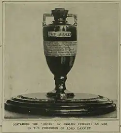 Two rival English tours of Australia were proposed in the early months of 1877, with James Lillywhite campaigning for a professional tour and Fred Grace for an amateur one. Grace's tour fell through and it was Lillywhite's team that toured New Zealand and Australia in 1876–77. Two matches against a combined Australian XI were later classified as the first official Test matches. The first match was won by Australia, by 45 runs and the second by England. After reciprocal tours established a pattern of international cricket, The Ashes was established as a competition during the Australian tour of England in 1882. A surprise victory for Australia inspired a mock obituary of English cricket to be published in the Sporting Times the following day: the phrase "The body shall be cremated and the ashes taken to Australia" prompted the subsequent creation of the Ashes urn.