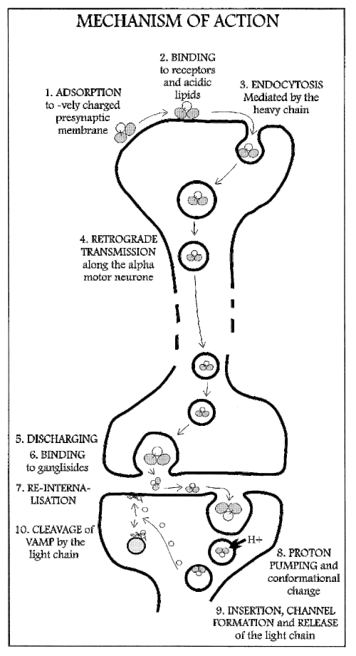 The mechanism of TeNT action can be broken down and discussed in these different steps: