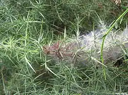 This mite is native to Europe, where it does more damage to the plant than any other organism. The mite appears to be host-specific; it does not attack any other plants. The adult and nymph damage the plant by piercing its tissues during feeding. Heavy mite activity reduces flowering and can stunt the development of the branches.