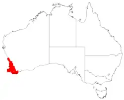 It is found in the South-West Province of Beard's classification of ecological regions, or using the more recent IBRA region definitions, in Avon Wheatbelt, Esperance Plains, Geraldton Sandplains, Jarrah Forest, Swan Coastal Plain, and Warren bioregions.