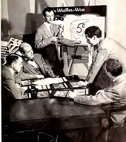 ![]() Tex Antoine (standing, pointing to map) on the cover of Sponsor Magazine, December 3, 1951. Seen with advertising executives. | |