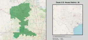 Texas's 38th congressional district is a congressional district in Texas, covering parts of Harris County. It includes the Houston suburbs of Jersey Village, Cypress, Tomball, Greater Katy, and Klein.[3] The Memorial Villages and a portion of the city of Houston are also located within the district.