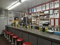 Little on the menu has changed since the restaurant's foundation.[6] Besides chili, it features a variety of hamburgers and hot dogs, as well as many breakfast items. Soft drinks are served, but nothing alcoholic.[7]