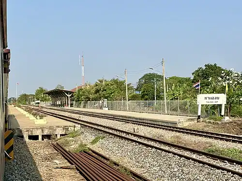 Tha Chalaep railway station is a railway station located in Sisa Thong Subdistrict, Nakhon Chai Si District, Nakhon Pathom. It is a class 3 railway station located 40.025 km (24.9 mi) from Thon Buri railway station.