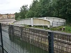 Between 1812 and 1816, a canal was built by convicts to take materials such as timber from the River Thames to Woolwich Royal Arsenal. Much of this canal has been filled in, but part remains in Thamesmead West and is now called the Broadwater.[3] A disused lock gate and swing bridge over the canal still exist beside the River Thames.[4]