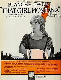 That Girl Montana is an extant 1921 American silent Western film starring Blanche Sweet and distributed by Pathé Exchange. Jesse D. Hampton produced and Robert Thornby directed. The film is based on a 1901 novel, That Girl Montana, by Marah Ellis Ryan. This is one of Sweet's few 1920s silent films to survive and is available in the DVD format.[1][2]