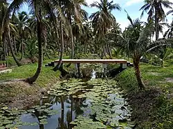 Coconut garden was designed by maintaining the original style and installing benches, a pedestrian way and small bridges crossing gutters.