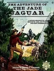 The Adventure of the Jade Jaguar is a solitaire adventure where a single player character must foil the villainous Jade Jaguar, who has formed a fighting force from the natives, and taken explorer Professor Jackson as a prisoner along with her colleagues.[2]