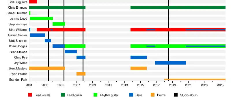 - Mike Williams – lead vocals (2002–2008, 2013–present), bass (2001, 2003–2004, 2015–2016, 2020–present)