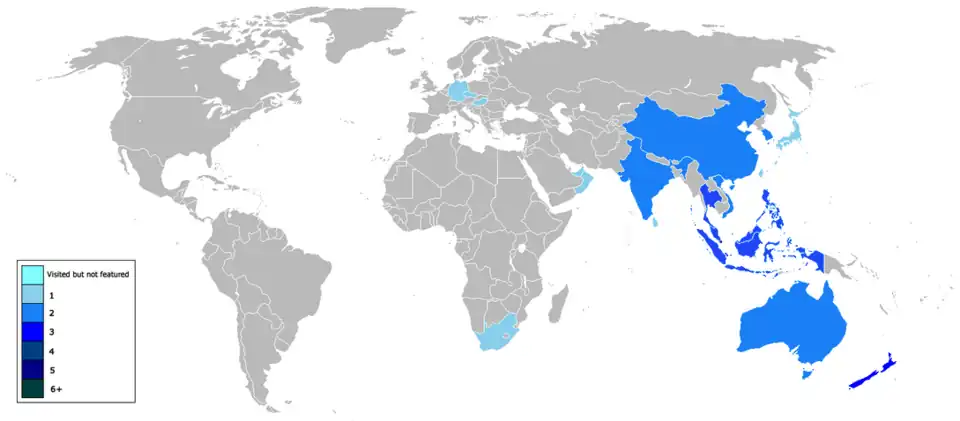 - ^ Tara Basro hosted only the legs in Indonesia.
