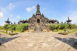 In this leg's second Roadblock, one team member, regardless of who performed the previous Roadblock, had to walk around the holiest inner zone of the temple compound while memorizing the names and locations of the Hindu deities inside the temple. Then, they would be given the map of the temple compound and had to correctly label all the locations of the Hindu deities by their names to receive their next clue.- After the second Roadblock, teams participated in the traditional Yogyakarta archery of Jemparingan Mataraman, whereby each team member had to hit a bull’s eye target with an arrow while sitting down to receive their next clue, which directed them by taxi to Alun-alun Selatan, where they had to find their next clue attached in one of the cycling cars, known as an odong-odong. Then, teams had to convince two locals to join them to take a ride on the odong-odong around the town square to receive their next clue. Then, they would have to ride again on the odong-odong to nDalem Ngabean in order to reach the Pit Stop.