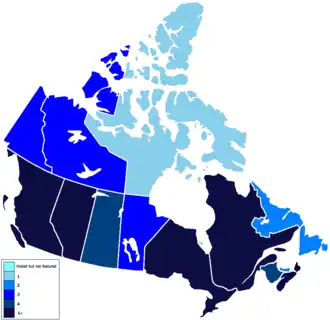 | 8 | Manitoba | 4 (2, 6, 9, 10) | 4 |