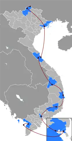 Pyongyang (Pyongyang International Airport) to Ho Chi Minh City, Vietnam (Tan Son Nhat International Airport)- Rạch Giá, Kiên Giang Province (Rạch Giá Harbour) (Pit Start)