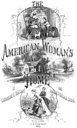 The American Woman's Home is a book published in 1869, co-authored by Catharine Beecher and her sister Harriet Beecher Stowe. It expands upon Catharine's 1841 book, A Treatise on Domestic Economy, which aimed to codify women's housekeeping duties and draw attention to the importance of this labor. The American Woman's Home presents the sisters' views on domesticity and how these ideals shaped their vision of a proper American household. The American Woman's Home prioritizes necessity over excessive furnishing or decor. It also seeks to eliminate the distinction between private and public spaces by creating communal spaces and eliminating the need for servants. These features, the sisters believed, would allow women's roles of housework and nurturing the family to thrive.[1] The book remains a foundational text in modern house design.[1]