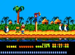 The Aquatic Games Starring James Pond and the Aquabats is an arcade sports game. The game is an aquatic-themed parody of games like Konami's Track & Field.