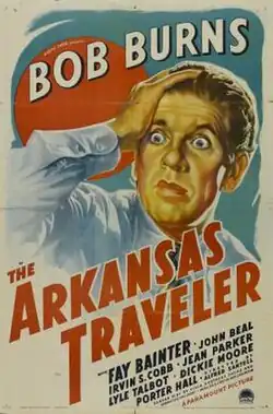 The Arkansas Traveler is a 1938 American comedy film directed by Alfred Santell and written by Viola Brothers Shore and George Sessions Perry. The film stars Bob Burns, Fay Bainter, John Beal, Jean Parker, Lyle Talbot and Irvin S. Cobb.[1][2] The film was released on October 14, 1938, by Paramount Pictures.