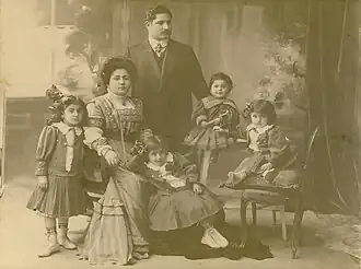 ![]() Bala bey Ashurbeyov with his wife Ismet khanim Ashurbeyovs with their children (from left to right): Sara khanim, Sitara khanim, Reshad bey, Maryam khanim. | |