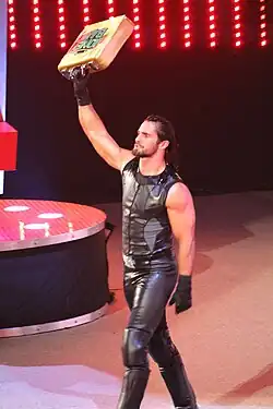 Rollins after winning the WWE World Heavyweight Championship at WrestleMania 31