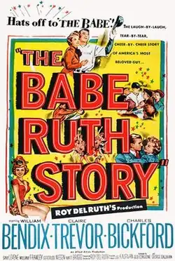 The Babe Ruth Story is a 1948 American biographical film about professional baseball player Babe Ruth (1895–1948), who achieved fame as a slugging outfielder for the New York Yankees. However, most of the film, except for the basic details of Ruth's life and career achievements, was fictionalized.[2] Directed by Roy Del Ruth, the film stars William Bendix (New York Yankee batboy in the 1920s) as the ballplayer and Claire Trevor as his wife Claire Merritt Hodgson. The film initially received positive reviews, but modern-day critics have faulted the film's heavy-handedness and direction, and it is said by many to be one of the worst films ever made.[3][4][5]