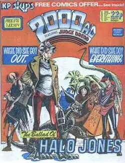 ![]() Halo's first appearance, on the cover of 2000AD (July 1984) | |