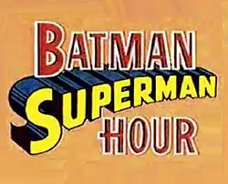 The Batman/Superman Hour is a Filmation animated series that was broadcast on CBS from 1968 to 1969.[1] Premiering on September 14, 1968, this 60-minute program featured new adventures of the DC Comics superheroes Batman, Robin and Batgirl alongside shorts from The New Adventures of Superman and The Adventures of Superboy.[2]