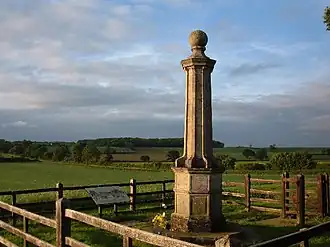 ![]() Battle memorial, and beyond the fields of Broad Moor, the site of the battle | |||||||