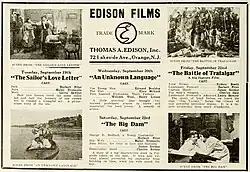 - ^ a b "Edison Films", advertisement for four of the company's productions with cast listings in The Moving Picture World, including The Battle of Trafalgar, September 16, 1911, p. 802. Internet Archive. Retrieved June 6, 2020.