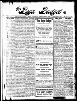 - ^ "The Bega Budget (NSW : 1905 - 1920) - 30 Sep 1905 - p1". The Bega Budget. 1 (1): 1. 30 September 1905. Retrieved 26 June 2013.