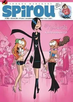 ![]() Issue 3802 (February 2011) of Spirou magazine, featuring (left to right) Jenny, Karine (in her new look) and Vicky | |