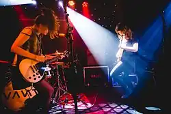 ![]() The Big Moon performing at The Echo in Los Angeles in 2016. From left to right: Soph Nathan, Juliette Jackson, Celia Archer. | |