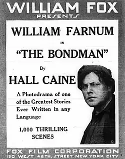 It was the intention of the William Fox Film corporation to place The Bondman in special theaters throughout the country at advance prices, but pressure was brought to bear to allow the regular picture theaters to obtain this big film.[7] On the release of the film Hall Caine cabled the New York Times requesting that they inform the American public that the film of his novel and Wilson Barrett's play was taken without his permission. Fox responded that it was public property.[8]