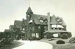 Peabody and Stearns also designed a detached cottage that was built with the mansion in 1877 and used as a children's playhouse. This building survived the 1892 fire and is still standing on the grounds of The Breakers.[9] It is open for tours on the grounds of the current mansion.[10] In 1879, Lorillard purchased an additional three quarters of an acre (45,138 square feet)[5] for $10,000 from Lawrence.[6] Also in 1879, Lorillard helped found the Newport Casino.[11]