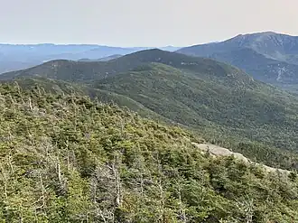 The Appalachian Trail, a 2,170-mile (3,490 km) National Scenic Trail from Georgia to Maine, runs across the southern base of the Cannon Balls between North Kinsman and Franconia Notch.