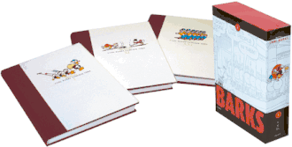 It was published from 2005 to 2008 in Denmark,[1]Norway,[2]Sweden,[3] and Germany.[4] It was also published by Sanoma in Finland,[5] although one year after the other countries. The complete set consists of 30 books collected in 10 slipcase boxes, constituting about 8,000 pages (including the articles) or some 500 comic book stories by Barks. The series was only available by subscription. In many aspects the series is similar to Carl Barks Library (CBL) but differs by being published in colour, organizing the stories by date of publication, using only unchanged artwork and containing material not used in CBL, much of it newly discovered and previously unpublished. Blum was a contributing editor to CBL, and his familiarity with the Barks canon and its historic background is the principal reason Egmont hired him. Blum has drawn not only on material that appeared previously in CBL but new research he has undertaken which has resulted in a number of significant discoveries and fresh perspectives on Barks and his creations.