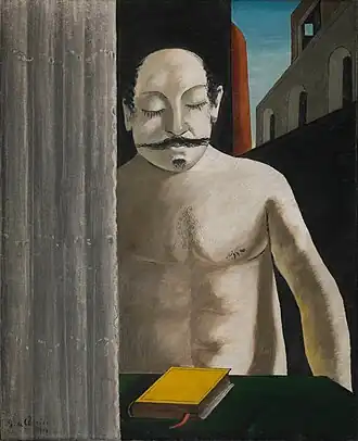 The Child's Brain (Italian: Il cervello del bambino) is an oil-on-canvas painting by the Italian artist Giorgio de Chirico. It was completed in 1914 in Italy and is an example of the metaphysical art style. The painting measures 80 by 65 centimeters and is now housed at Moderna Museet, Stockholm. The subject of The Child's Brain is a nude young man, seen from the waist up, who is standing in back of a table with his eyes closed.[1]