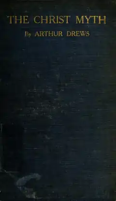 ^"New Foe Of Religion Arises". Chicago Tribune. February 6, 1910. Retrieved 30 August 2015. NEW FOE OF RELIGION ARISES--German Professor Maintains the Messiah Never Lived.--BIG DEBATES IN PUBLIC.--Women Overcome by Hysteria Interrupt Disputants.--[BY CABLE TO THE CHICAGO TRIBUNE.]--BERLIN. Feb. 5.—Berlin was this week the scene of one of the most remarkable theological discussions since the days of Martin Luther. It was provoked by Prof. Arthur Drews of Karlsruhe, who caused a public sensation by plastering the billboards of the town with posters propounding the startling question:--"Did Jesus Christ ever live?"--On Monday the professor addressed a big meeting at the Zoölogical garden in defense of his theory that Christ never lived and the following night he appeared in the same forum in order, Luther-like, to defend his theses against all comers.--A score of the most eminent theologians of the country responded to the invitation. The debate was carried on with fervor and passion before an audience of more than 2,000 persons, who were held spellbound until 3 a.m. The last hour was employed by Drews in a final retort to his critics.--Women Overcome by Emotion.--Drews' onslaughts on the most cherished tenets of the Christian doctrine were so graphic and ruthless that many women of the audience were overcome with emotion and had to be carried from the hall shrieking hysterically. An intensely dramatic scene was presented by one woman. who stood on a chair and held her arms outstretched in an attitude of supplication to heaven to send down retribution upon the head of the Karlsruhe heretic.--Prof. Drews appeared in Berlin under the auspices of the League of Monists, whose position, as their name denotes, is akin to those who express their creed in the formula, "There is no God but God; for hear, O Israel, the Lord, thy God, is the one God."-- The professor laid down his theories after the classic manner of old time university disputations. The gist of his position in large measure was like the mythical theory of David Strauss, which created a sensation fifty years ago. Strauss held there was verity in the historic Christ, but that the vast mass of miracle and supernatural wonders had been woven like wreaths around the head of Jesus. Drews goes further. He alleges there never was such a person as Jesus of Nazareth.--Baron Leads Opposition.--Baron von Soden, professor of theology in the University of Berlin and pastor of the Jerusalem church of Berlin, led the theological onslaught on Drews. He maintained that, even if it were firmly proved that no such person as Jesus ever existed, that hardly would injure the heart and core of the Christian religion.--Other speakers attempted to ridicule Drews out of court by quoting the semi-satirical works which have been written bearing such titles as "Historic Doubts About Napoleon," about Martin Luther, and about Frederick the Great.--The discussions have aroused tremendous interest throughout Germany.