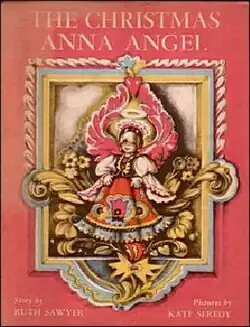 The Christmas Anna Angel is a 1944 picture book by Ruth Sawyer and illustrated by Kate Seredy. Although written and published during World War II, the story takes place in Hungary during World War I as a girl Anna hopes for a Christmas miracle. Seredy was the perfect choice to illustrate a story set in rural Hungary during World War I, full of local costumes and traditions. The story begins, realistically, with a farming family. Just as realistically, ruthless soldiers search the farm for flour, and take the year’s harvest. Happily, young Anna’s faith in a personal angel, her own Anna Angel, is rewarded by a dream-like Christmas Eve making and baking of the special Christmas cake – just in time for Christmas Day. Fortunately, Anna’s little dog is able to talk, and helps her, too.