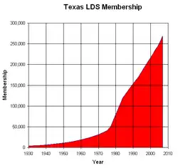 Texas has the 5th most members of the LDS Church in the United States, and the most members east of the Rocky Mountains.[4] The LDS Church is the 6th largest denomination in Texas.[5]