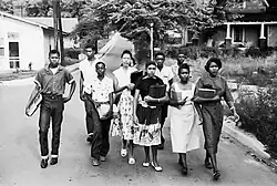 In 1954 the Supreme Court of the United States ruled that Tennessee schools had to desegregate in the case of Brown v. Board of Education. Prior to that decision, schools for white students received much more money than their Black counterparts.[2] Black students in Anderson County were bused to Knoxville (a 35-minute drive, one way) to attend their segregated schools.[2] Black families and the Black community sought equal education for their children, and the matter was taken to the courts. In 1950, a few years prior to the Supreme Court ruling, some African-American students tried to enroll in Clinton High School but were denied. This issue was taken to court and became known as McSwain et al. v. County Board of Education of Anderson County, Tennessee. The judge ruled that the students could not enroll. After Brown v. Board of Education, Anderson County Public Schools tried to delay desegregation of schools as long as they could, but were ordered in January 1956 to start the process in the upcoming school year. In the fall of 1956, the Clinton 12 enrolled at Clinton High School.[1]