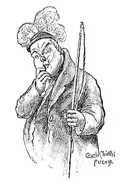 The Coachman (Italian: il Conduttore del Carro), also known as The Little Man (l'Omino, or more precisely l'Omino di Burro, 'the Buttery Man'), is a fictional character and a major antagonist from Carlo Collodi's 1883 book The Adventures of Pinocchio (Le avventure di Pinocchio), in which he appears in chapters XXXI and XXXIII.