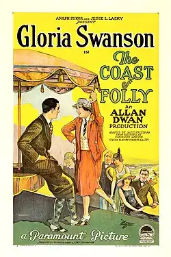 The Coast of Folly is a 1925 American silent drama film directed by Allan Dwan and starring Gloria Swanson in a dual role as mother and daughter. Richard Arlen had a small part in the film but his scenes were cut before its release. The film was based on the novel of the same name by Coningsby William Dawson, and adapted for the screen by James Ashmore Creelman.[1]