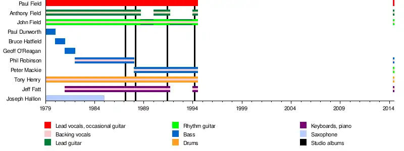 - Paul Field – lead vocals, occasional guitar (1979–1994, 2014)
