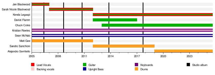 | Past members | Jen "Hellcat" Blackwood Sandro Sanchioni Matt "Pomade" Gee Sarah Nicole "Sin" Blackwood[2] |
