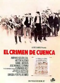 The Crime of Cuenca (Spanish: El crimen de Cuenca) is a 1980 Spanish drama film directed by Pilar Miró and based on an instance of miscarriage of justice, the Crime of Cuenca, which took place in the early 20th century in the province of Cuenca. El crimen de Cuenca is the title of a book published at the same time by the author of the movie script, (Lola) Salvador Maldonado, in which she recounts the same facts.