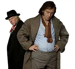 The writers of Steptoe and Son, Ray Galton and Alan Simpson, also distanced themselves from the drama, stating in a letter to The Times published shortly before the drama was aired that "during this entire [12 year] period we were unaware of any conflict between the actors save from the occasional gritting of Wilfrid's false teeth when Harry had the perceived audacity to give him a little direction. At all other times they were the acme of professionalism."[12] In a radio interview on 15 January 2009 Alan Simpson stated that the drama was "not at all accurate", while Ray Galton claimed, "We didn't recognise any of that. Really didn't." Both agreed that any notion of friction or hatred between Corbett and Brambell was inaccurate, stating, "They worked beautifully together."[13]