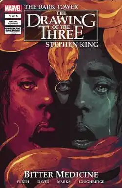 The Dark Tower: The Drawing of the Three - Bitter Medicine is a five-issue comic book limited series published by Marvel Comics.[1][2] It is the fourteenth comic book miniseries based on Stephen King's The Dark Tower series of novels. It is plotted by Robin Furth, scripted by Peter David, and illustrated by Jonathan Marks and Lee Loughridge, with covers by Nimit Malavia. Stephen King is the Creative and Executive Director of the project. The first issue was published on April 20, 2016.