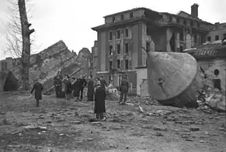 In early July 1945, British newspapers quoted a Soviet major who reputedly led the Red Army into the Chancellery garden as saying that he saw a body near the bunker exit which he thought was "a very poor double".[31][32] United States newspapers quoted the Russian garrison commandant of Berlin as claiming that Hitler had "gone into hiding somewhere in Europe", possibly aided by Francoist Spain.[33] When asked at the Potsdam Conference in mid-July how Hitler had died, Soviet leader Joseph Stalin said he was living "in Spain or Argentina".[34] In mid-1945, a Soviet major told American sources that Hitler escaped, claiming that the body found in the Chancellery garden "didn't look like Hitler at all" and that Braun's body had also not been found.[35][36][37]