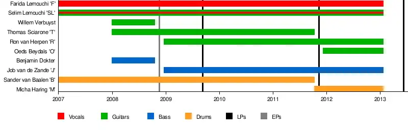 | Past members | Farida "F. The Mouth of Satan" Lemouchi Selim "SL" Lemouchi Sander 'B' van Baalen Thomas 'T' Sciarone Benjamin 'Jimmy Blitzer' Dokter Willem 'Will Power' Verbuyst Job 'J' van de Zande Ron 'R' van Herpen Micha 'M' Haring Oeds 'O' Beydals |