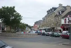The Diamond is the main square in Donegal Town. It forms the town centre with an extensive pedestrian area with seating and trees. It includes a prominent 'obelisk' unveiled in 1938 celebrating 'the Four Masters', four Gaelic historians led by Brother Mícheál Ó Cléirigh who wrote The Annals of the Four Masters between 1630 and 1636.[1][2] The Plantation of Ulster and the establishment of 'plantation towns' often included a meeting area or market place (often with a 'mercat cross') in the town centre.[3]