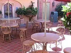 Originally conceived by Lillian Disney, the Patio was a place where Lilly could be outdoors, but away from the Park guests. Lilly also purchased the bronze fountain head sculpture, as well as other antiques located throughout the Gallery. Since she was a lover of plants, Lilly had planters installed wherever possible.